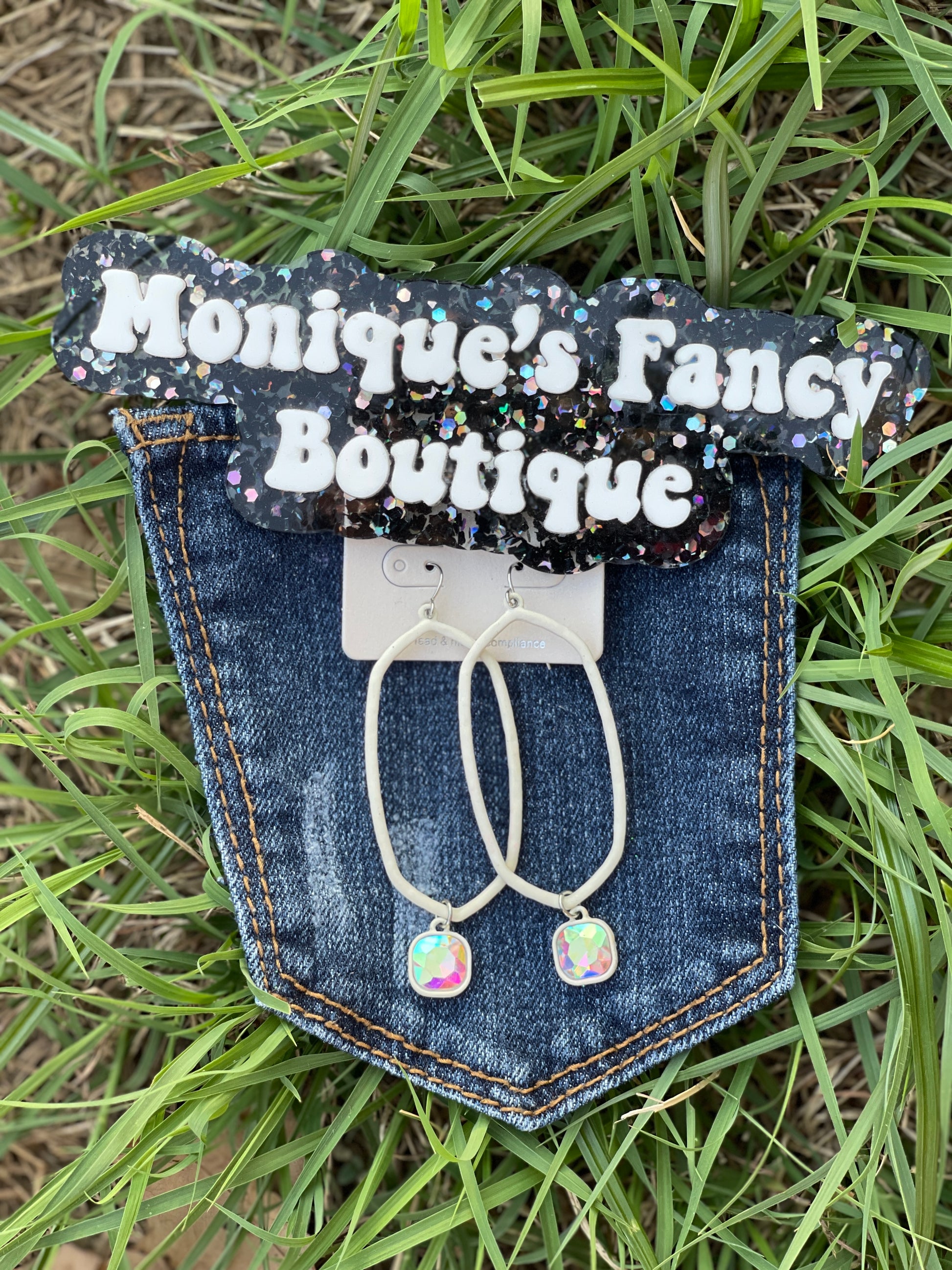 White earrings with ab stone